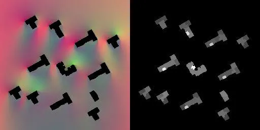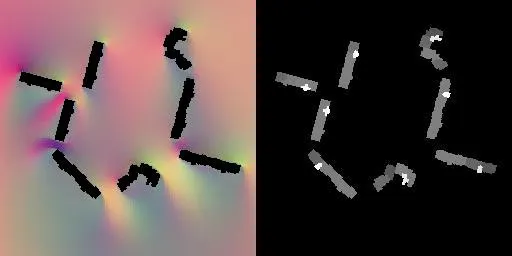 Data samples: CFD simulation results (left) and height map of buildings (right)
